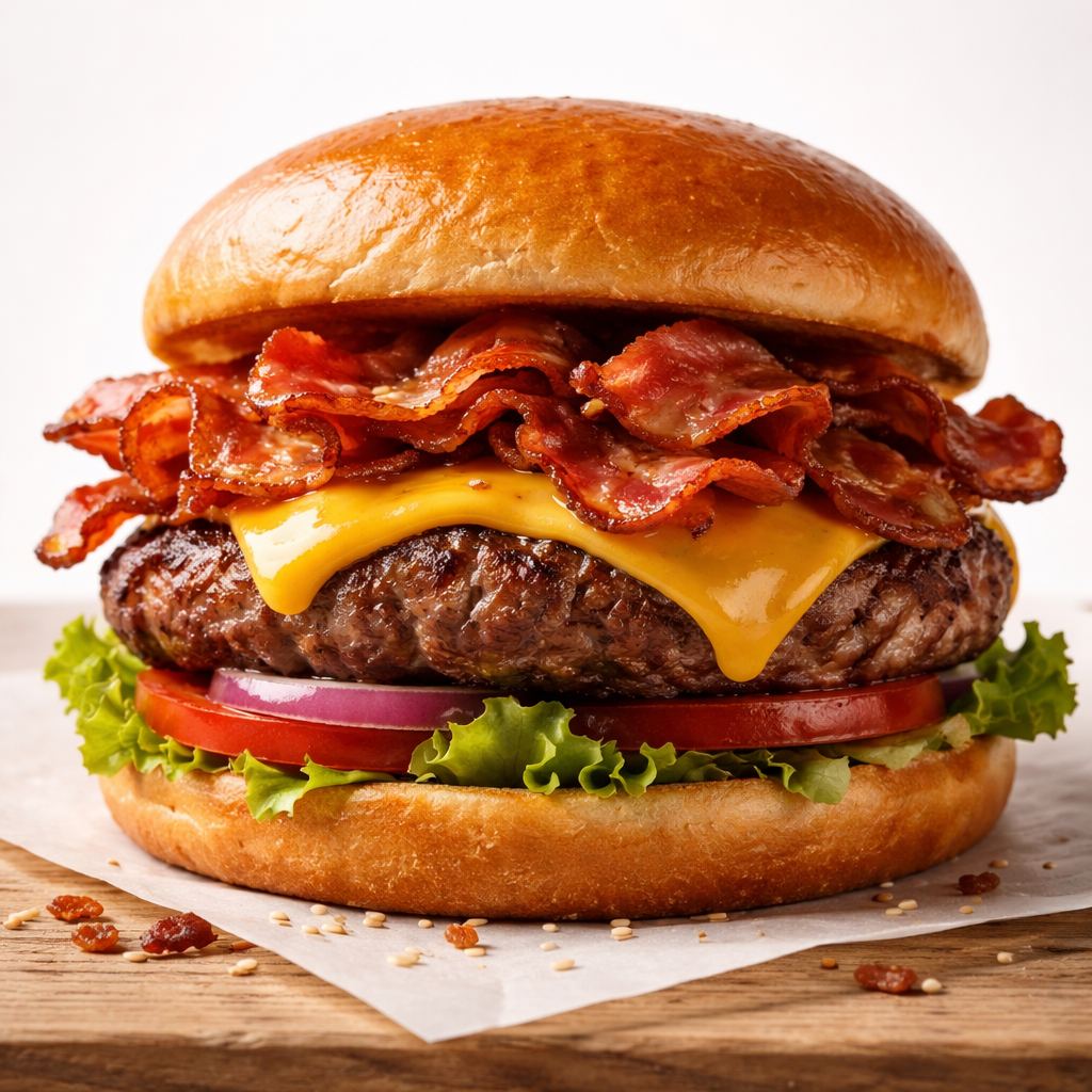 Pão de hambúrguer, peito de frango grelhado, queijo mussarela derretido, presunto, ovo frito, alface, tomate e maionese